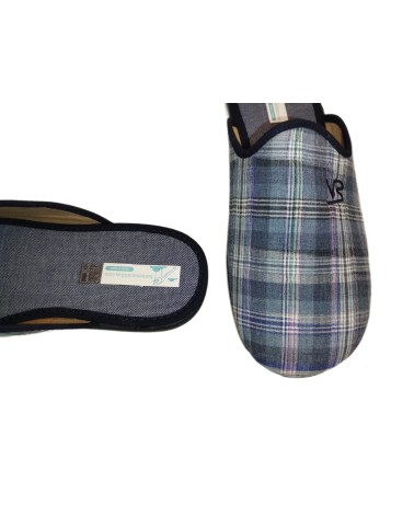 Zapatillas descalza en tejido de lona con estampados de cuadros y ribete en negro. Suela de caucho antideslizante y flexible. Zapatillas muy cómodas para el hogar y frescas para los días de verano.