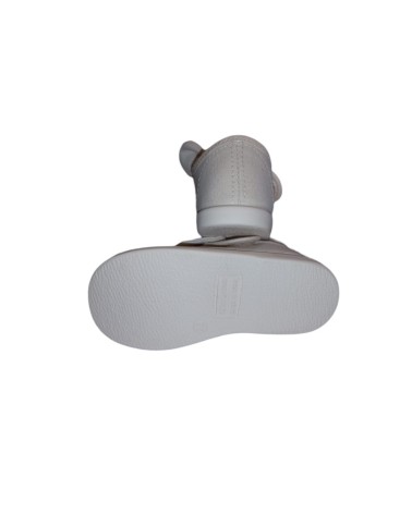 Francesita de lona en color natural, con lazo del mismo color (el lazo se puede sacar), ajuste con velcro y suela de caucho antideslizante.